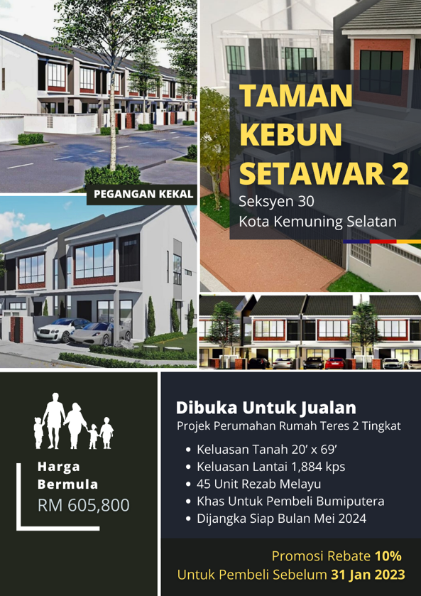 YAA selaku ejen rasmi jualan perumahan teres 2 tingkat di Taman Kebun Setawar 2, Seksyen 30, Kota Kemuning